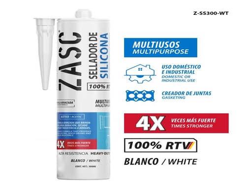 SILICON BLANCO 300ML 100%RTV UNID ZASC