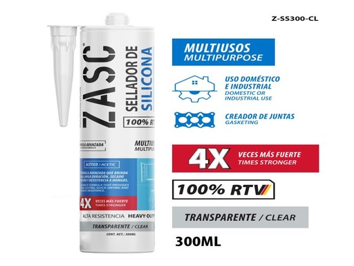 SILICON TRANSPARENTE 300ML 100%RTV UNID ZASC
