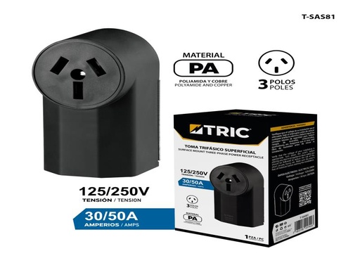 TOMA HEMBRA TRIFÁSICO SUPERFICIAL 50A 250V UND TRIC